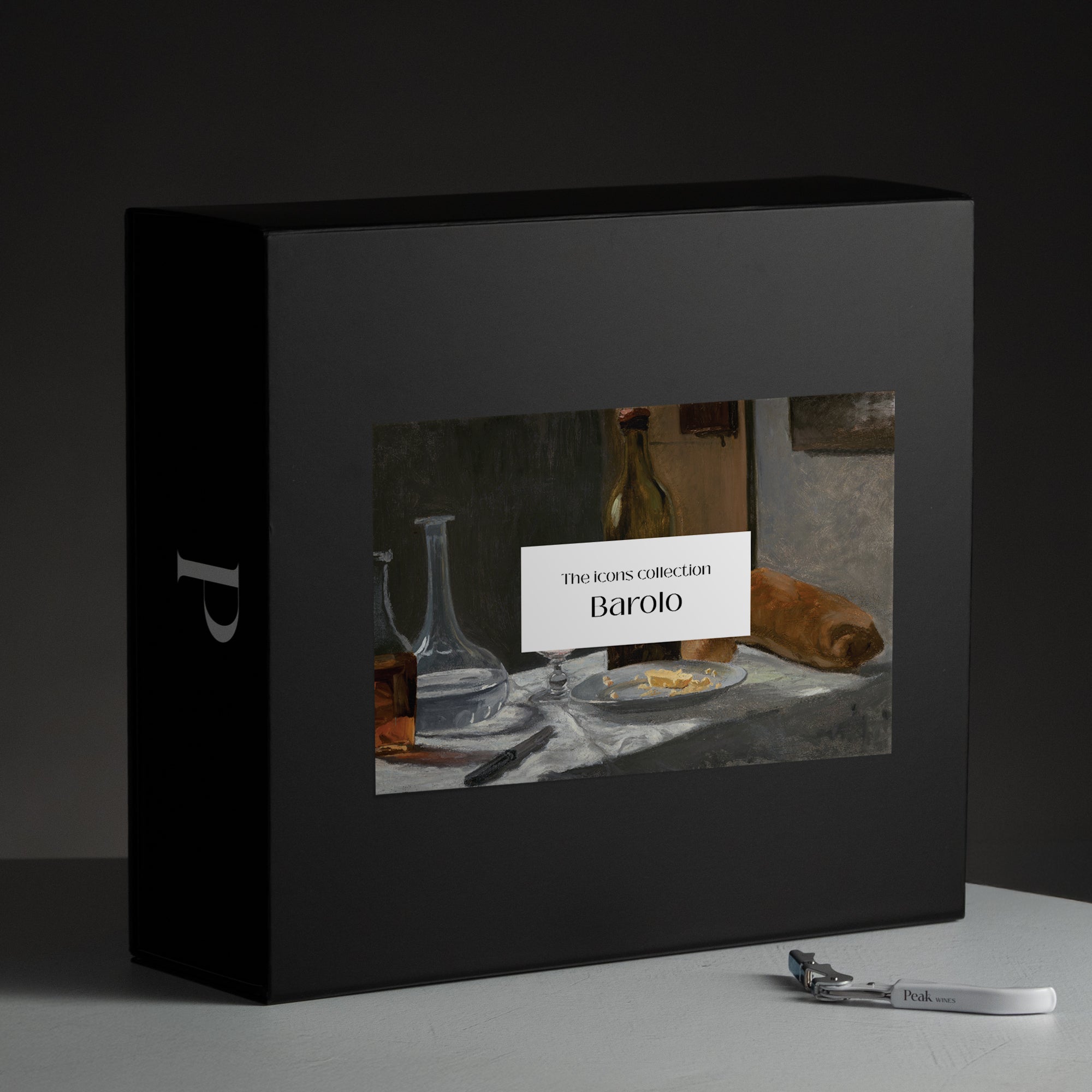 A custom-made high-end box, an art print, descriptions supporting the product and a wine gadget.