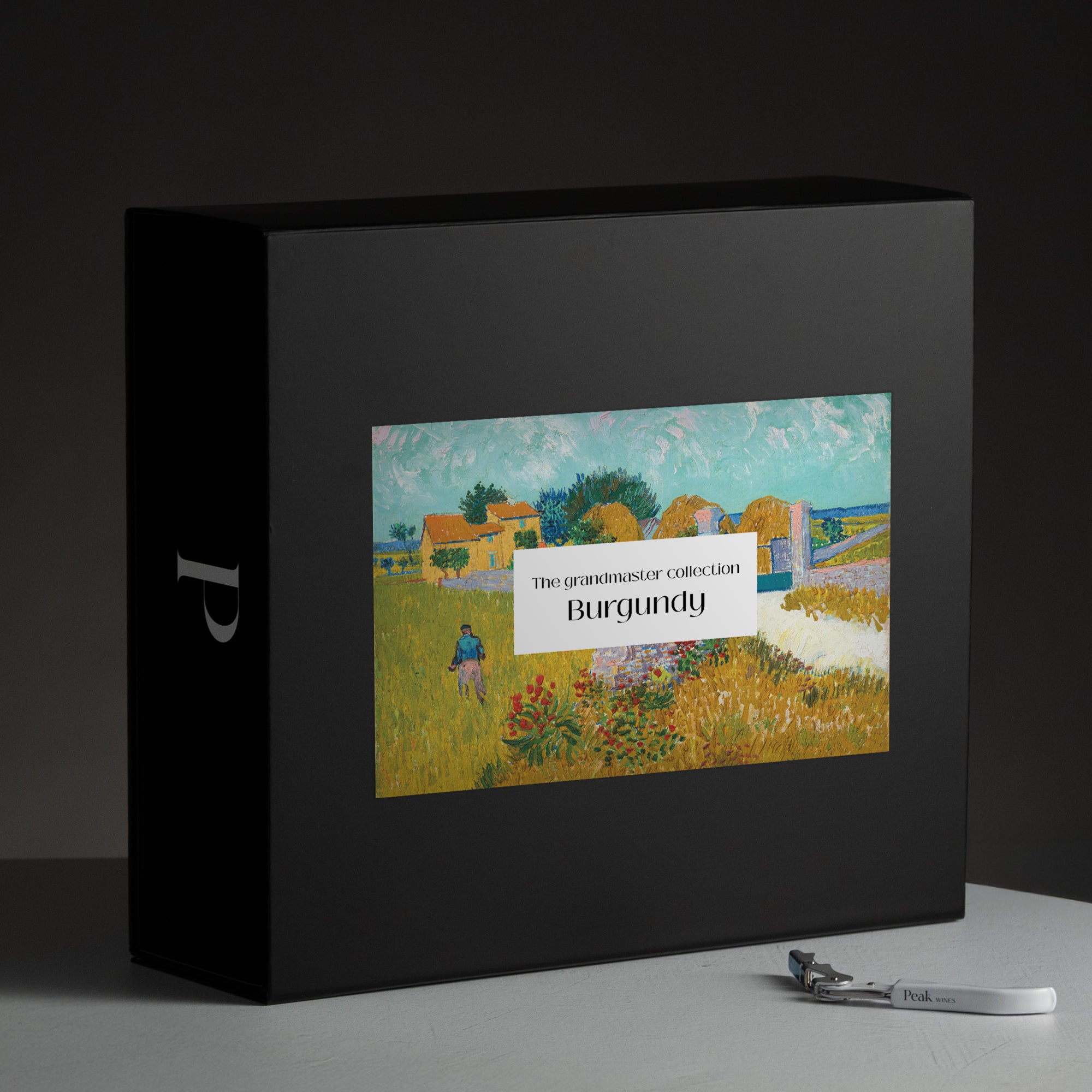 When purchasing this product you will receive a custom-made high-end box, an art print, descriptions supporting the product and a wine gadget.