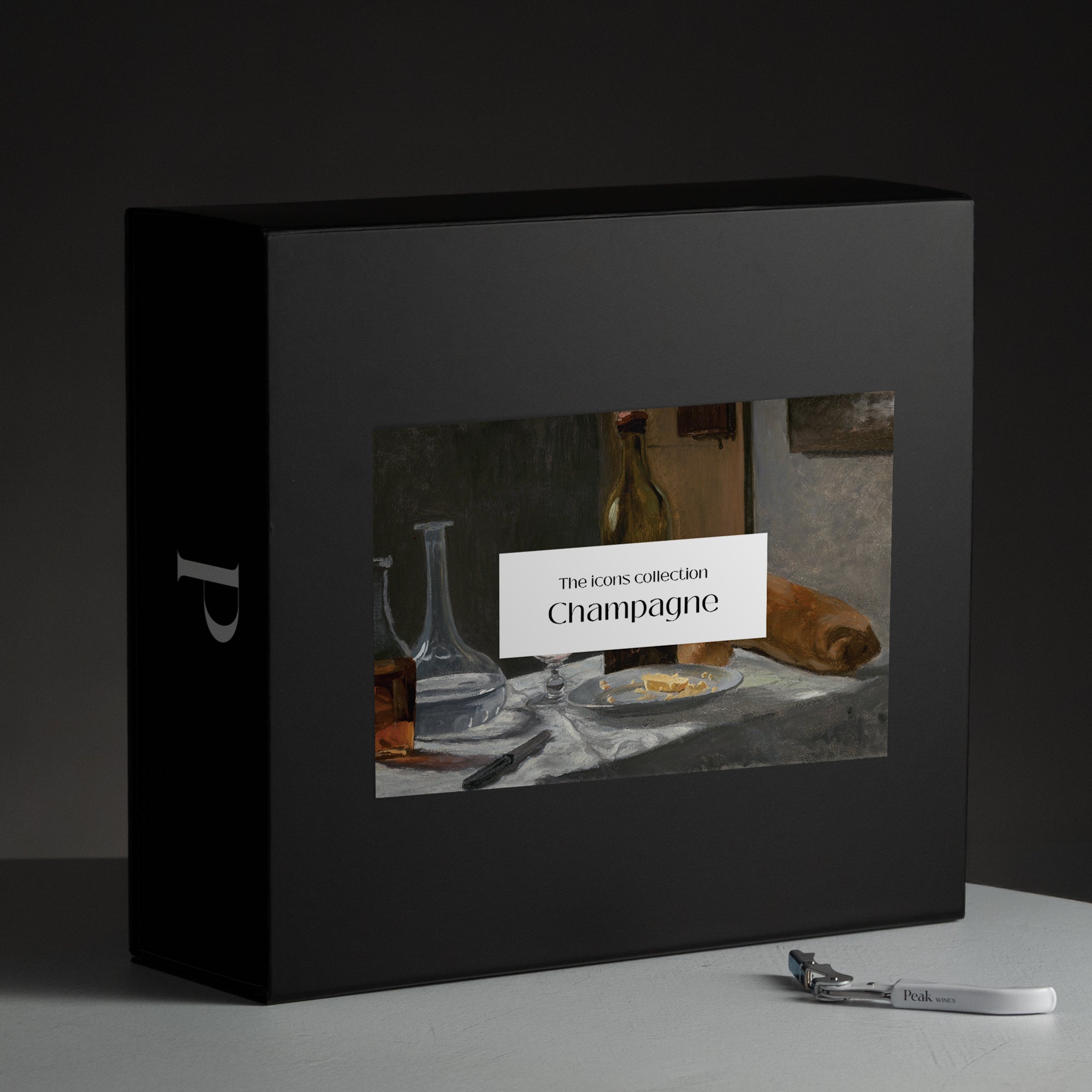 A custom-made high-end box, an art print, descriptions supporting the product and a wine gadget.