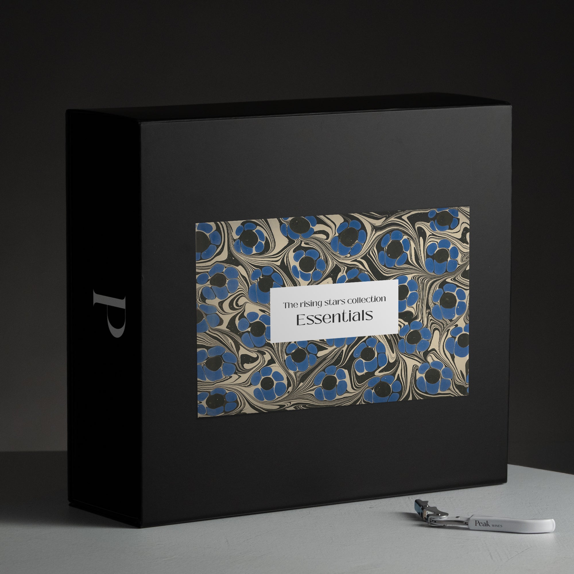 A custom-made high-end box, an art print, descriptions supporting the product and a wine gadget.