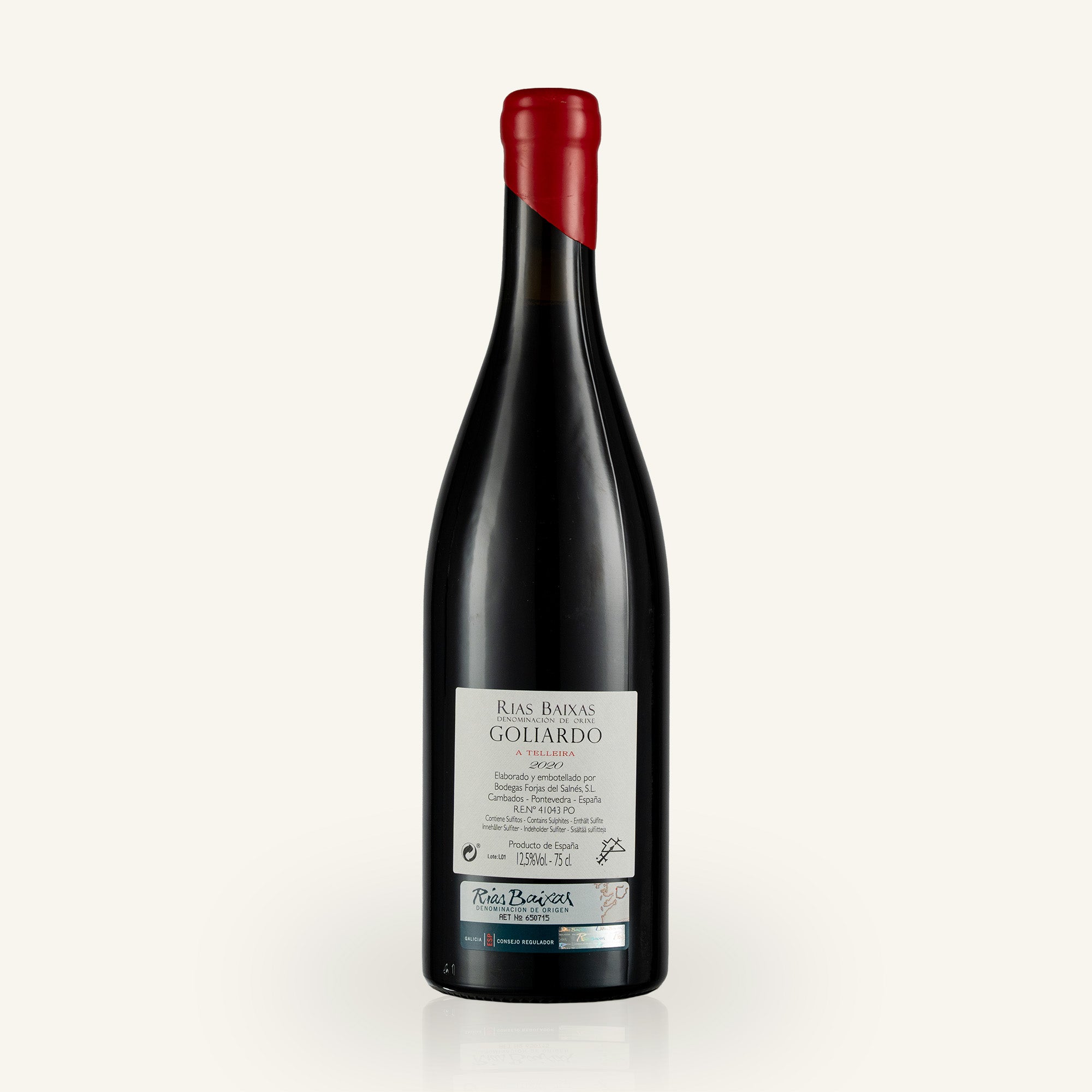 Goliardo A Telleira Tinto is a rare, Atlantic red from Caíño Tinto grown near the ocean in Rías Baixas. The 2020 is perfumed, austere and Burgundian in its finesse.