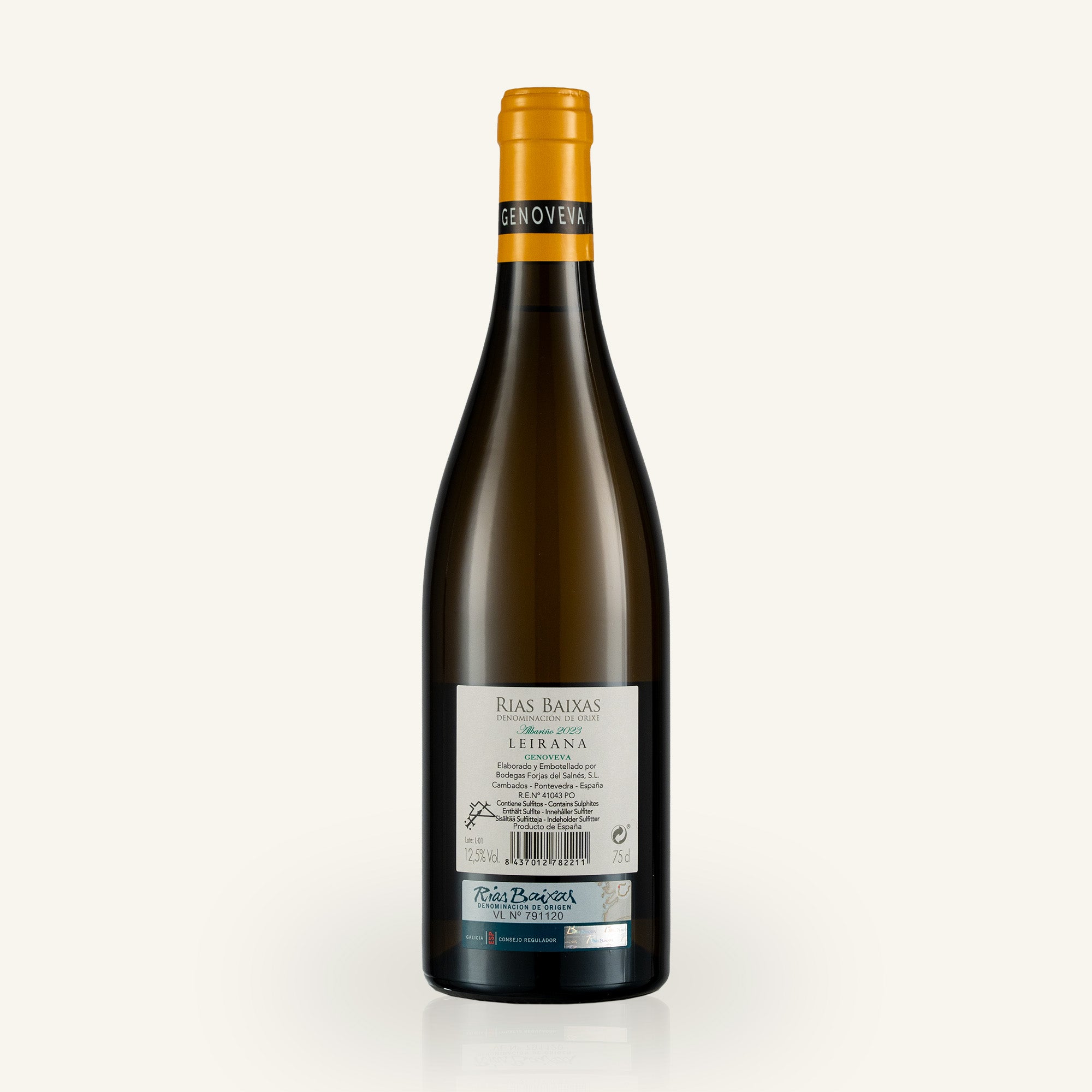 Leirana Finca Genoveva is a single-parcel Albariño from 180-year-old pre-phylloxeric vines. The 2023 is powerful, deeply mineral and one of the most serious whites of the region.