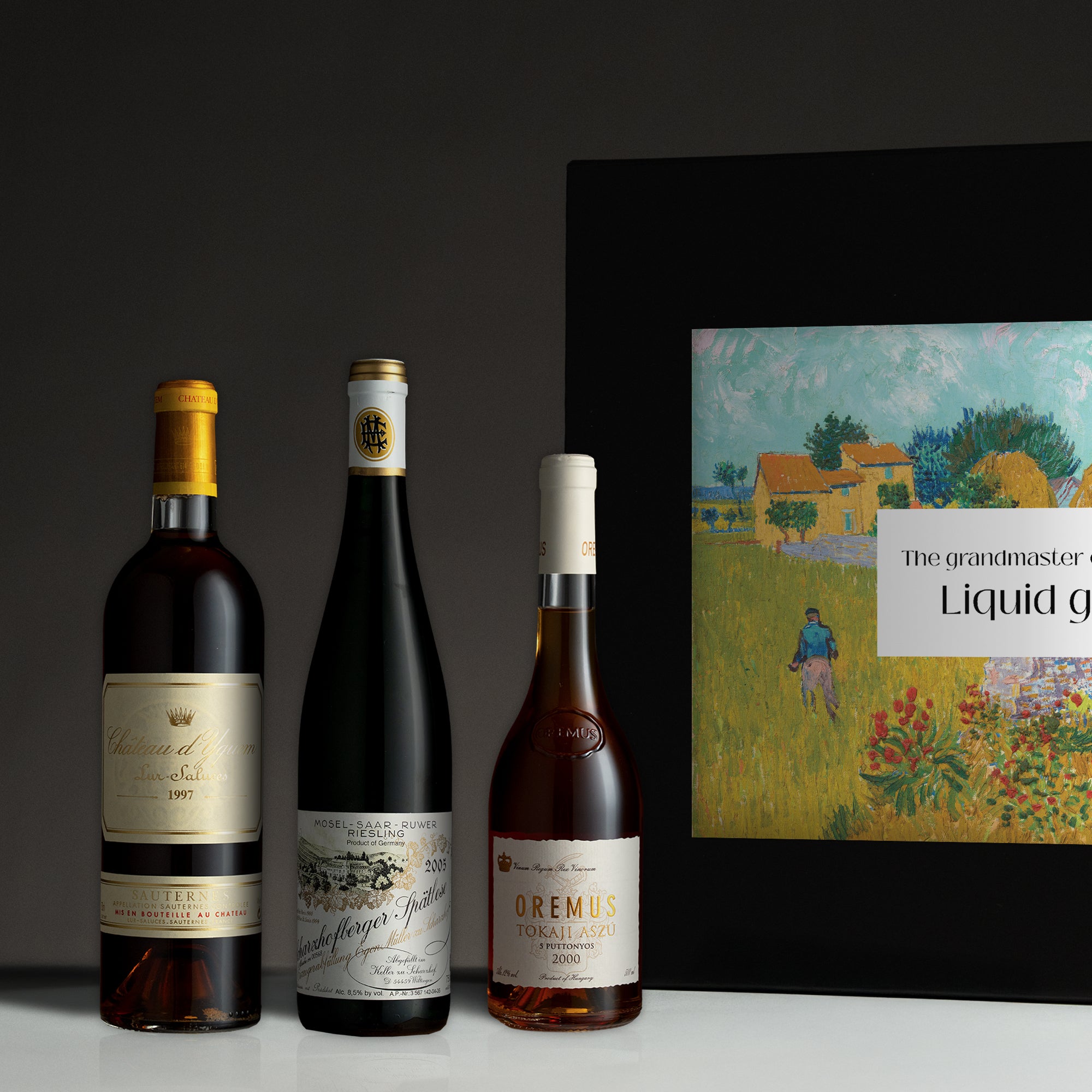 Sweet wines of absolute pedigree. D’Yquem for richness and purity, Egon Müller Spätlese for crystalline delicacy, and Oremus Tokaji for layered botrytis complexity. An extraordinary collection that captures the artistry of sweetness.