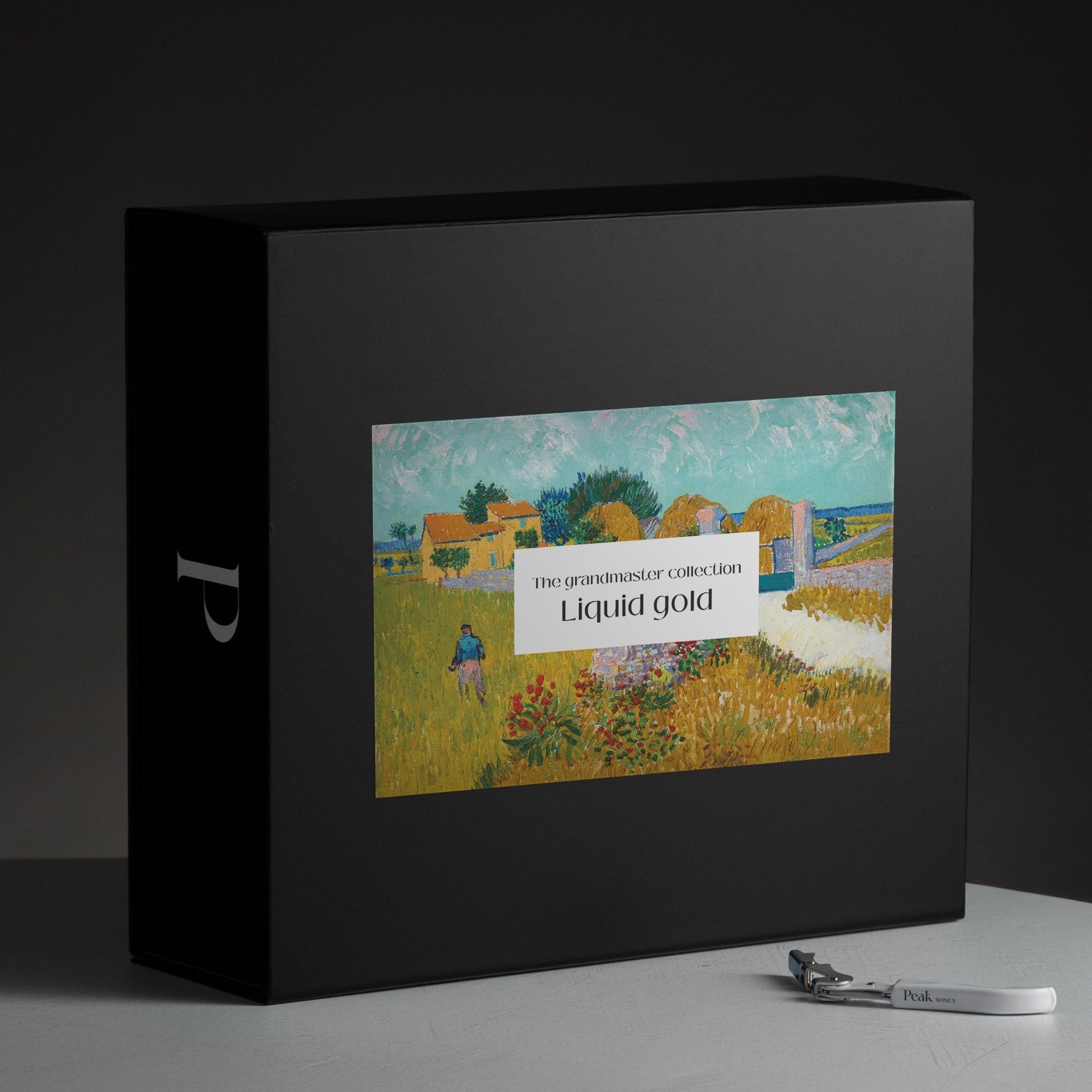 When purchasing this product you will receive a custom-made high-end box, an art print, descriptions supporting the product and a wine gadget.