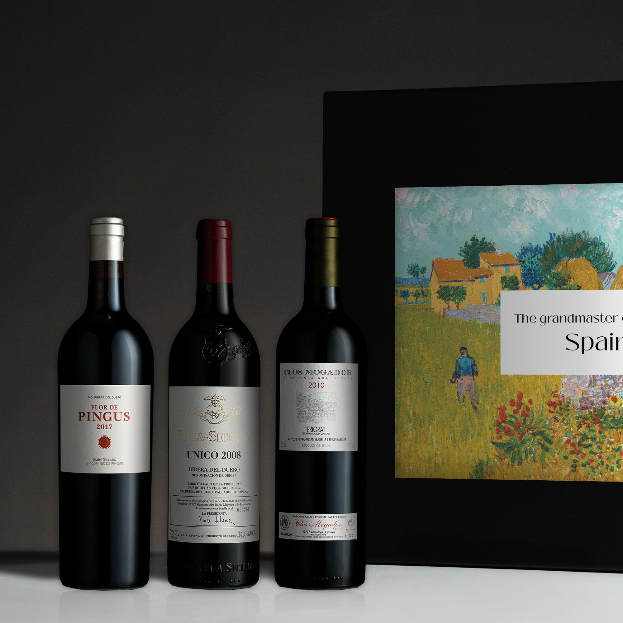 A trio of monumental wines: Clos Mogador’s Mediterranean core, Unico’s timeless finesse, and Pingus Flor de Pingus with its sculpted modernity. This set shows Spain at its absolute peak. Serious, evocative, unforgettable.