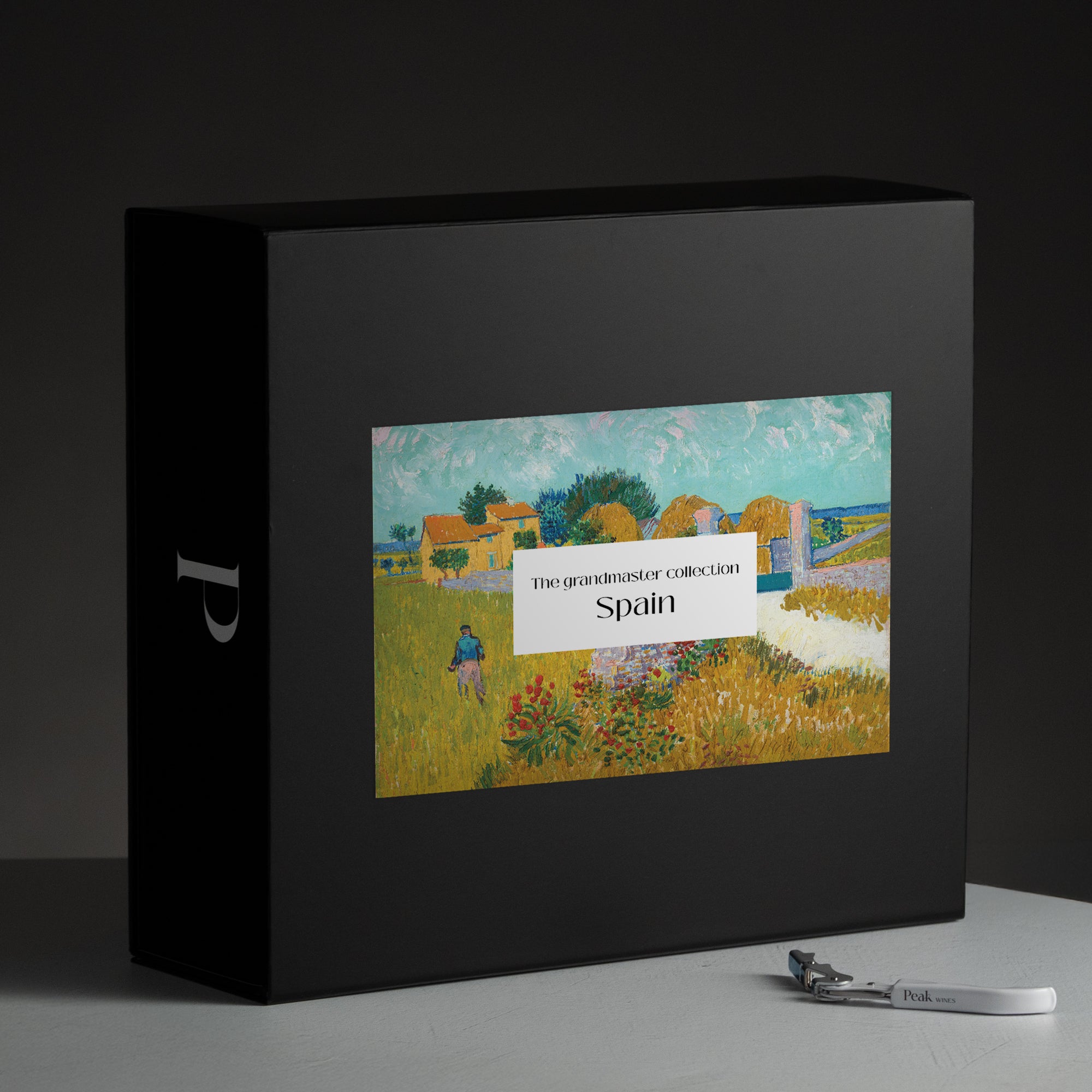 A custom-made high-end box, an art print, descriptions supporting the product and a wine gadget.